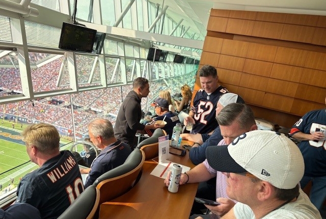 We host select clients and partners in our exclusive suite at Chicago Bears games for a more personal, relationship-driven experience. These events are designed to foster meaningful conversation in a relaxed setting—no agendas, no presentations, just time to connect and enjoy the game together.
